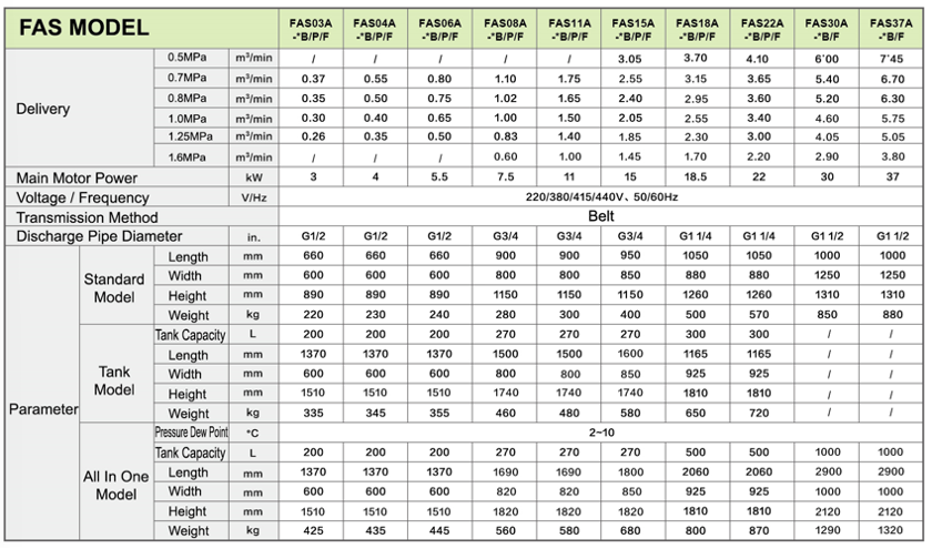 Model : FAS03A, FAS04A, FAS06A, FAS08A, FAS11A, FAS15A, FAS18A, FAS22A, FAS30A, FAS37A, FAS45A, FAS55A/W, FAS75A/W, FAS90A/W, FAS110A/W, FAS132A/W, FAS160A/W, FAS185A/W, FAS200A/W, FAS220A/W, FAS250A/W, FAS280A/W, FAS300A/W